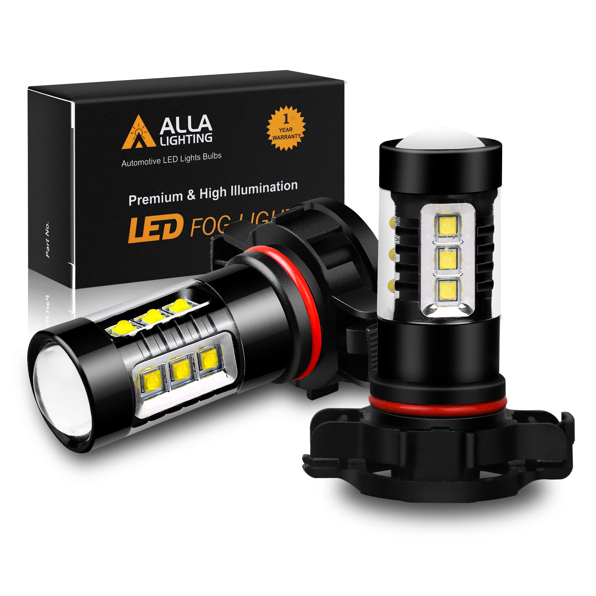 Alla Lighting CANBUS 2504 PSX24W LED Fog Lights Bulbs Xtreme Super Bright 80W High Power Chipsets12V 12276 Error Free, 6000K Xenon White