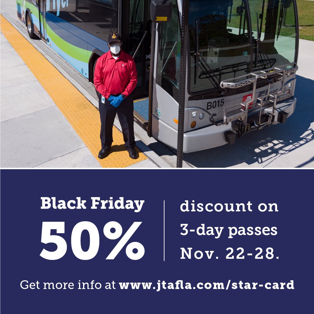 Jacksonville Transportation Authority (JTA) on Twitter: "Be sure to ... Nov 23, 2020 ... @JTAFLA. Be sure to use the promo code “JTA3Day” in the MyJTA app to get your ... Our 3-day Bus Passes are 50% off through Saturday Nov. 28!