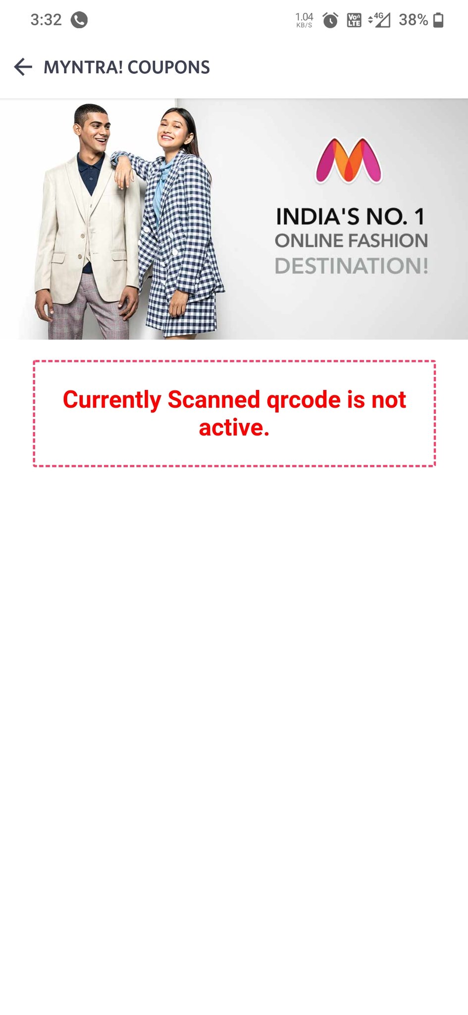 Myntra on Twitter: "@bat2bats We'll help you with this, Abhi ... "Scan for coupon" in the app shows them invalid ... I got the QR code is not available after scanning it in Myntra App, i purchased my products and it got ...